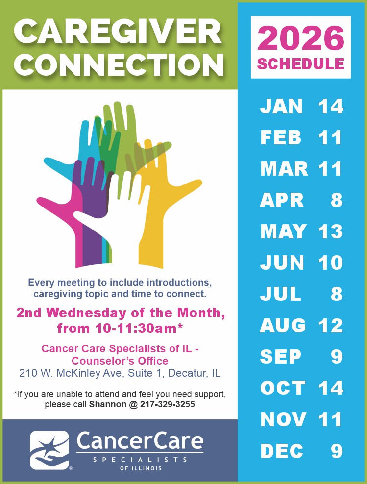 For patients of Cancer Care Center of Decatur, DMH Cancer Care Institute, HSHS St. Mary’s Hospital and our satellite clinics satellite clinics in Clinton, Monticello, Pana, Shelbyville, Sullivan, and Taylorville, IL.
